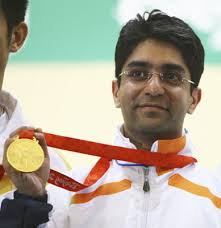 He is the current World and Olympic champion in the 10 m Air Rifle event. By winning the gold in the 10 m Air Rifle event at the 2008 Beijing Olympic Games, he became the first Indian to win an individual gold medal at the Olympic Games and India's first gold medal since 1980, when the Men's Field Hockey Team won the gold.